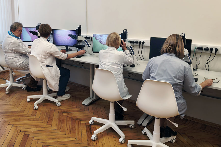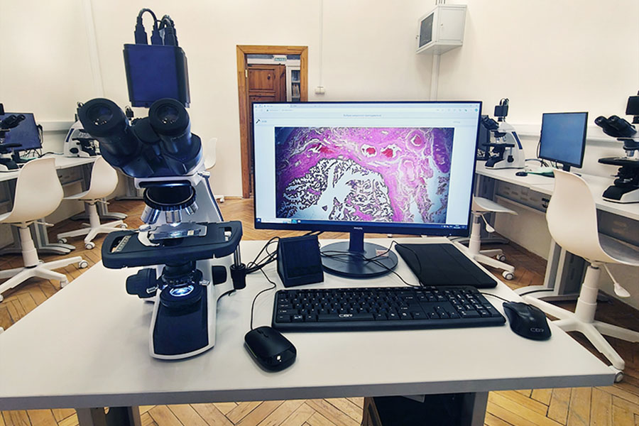 - Класс цифровой микроскопии позволяет работать командой и изучать значительно большее количество микропрепаратов, обсуждать с преподавателем не только свои задания, но и задания других обучающихся.